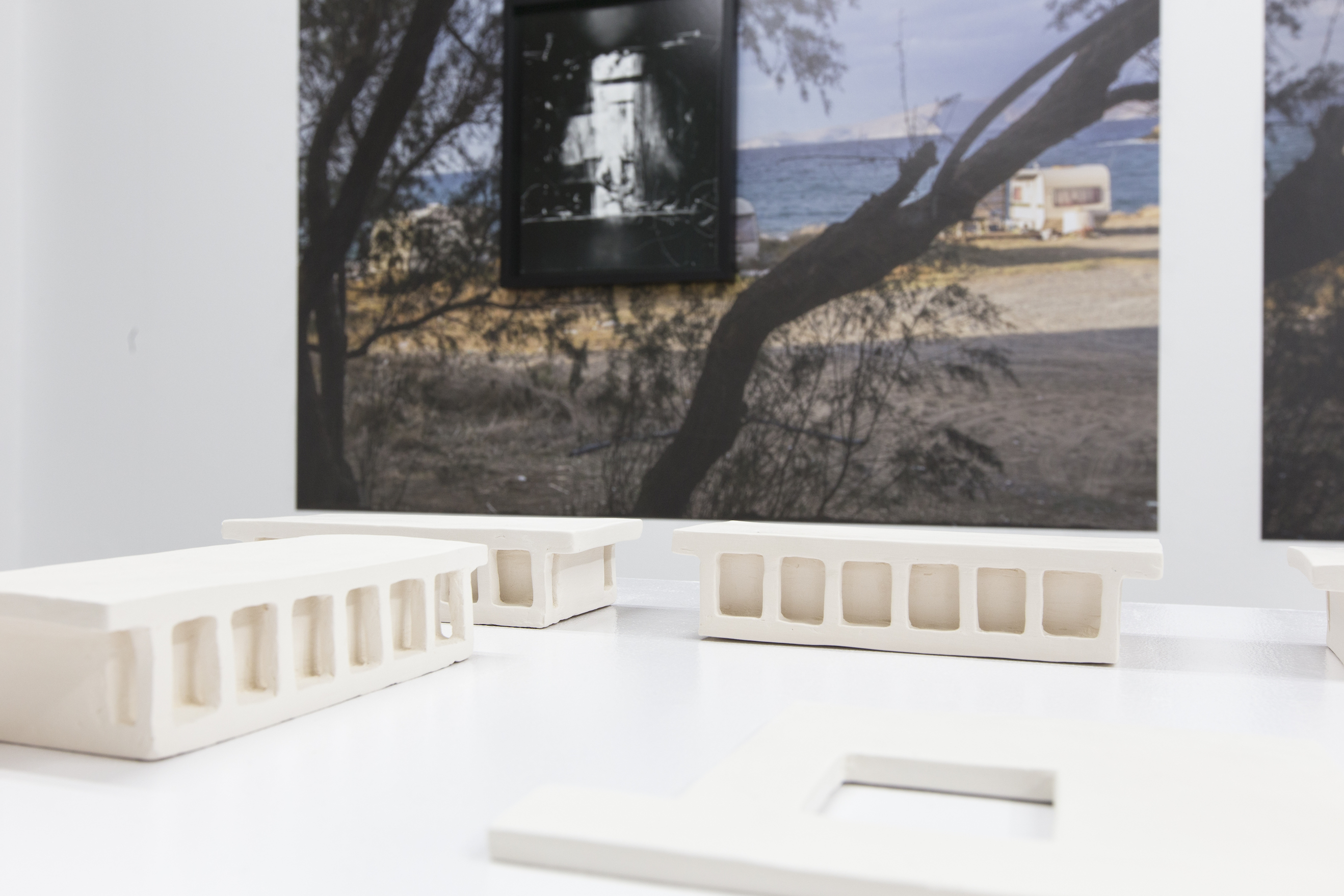 The installation “Xenia” by Dorota Walentynowicz is a work referring to architecture and the history of modern tourism in Greece. Following the implementation of the Marshall Plan, tourism has become a priority industry for the Greek state in the efforts to restructure and mitigate class conflicts at the end of the World War II and the Civil war. In 1950-1974, the Greek government introduced the Xenia project, a national coastal tourism development program aimed at the new middle class: under the supervision of the most outstanding architects in the country, a network of elegant, well-designed hotel complexes has emerged, which have become far prototypes of modern mass holiday resorts.